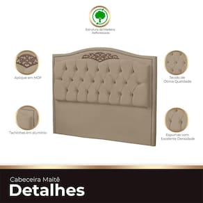 Transforme seu quarto em um refúgio de luxo com nossa cabeceira estofada Queen Size Maitê para cama box casal. Com um design estiloso e moderno, ela adiciona um toque romântico e sofisticado ao ambiente. Os detalhes em tachinha de alumínio e o aplique em MDF elevam o padrão de elegância. Além disso, os delicados botões encapados com tecido na cor do móvel são o toque final que você estava procurando. Experimente o conforto e o charme que só uma cabeceira assim pode oferecer. Transforme seu quarto em um verdadeiro oásis de beleza e estilo!