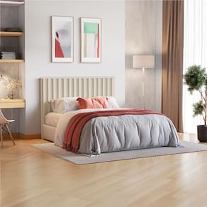 Ideal para colchão box de casal ou queen size (vendido separadamente), ela é produzida em MDF de 15 e 25mm de espessura, conta com detalhe ripado de madeira, detalhes em baixo relevo de 15mm e e acabamento em pintura UV de possibilita maior vida útil do produto.