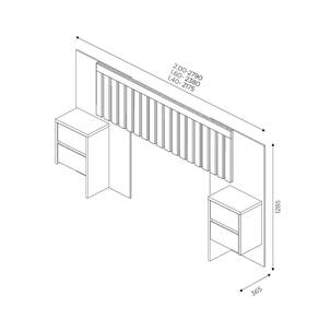 Cabeceira Flórida Flex: Casal / Queen / King, Flex: 1,40/1,60/2,00 m, Painel Ripado em Mdp, c/ Mesa de Cabeceira, Estrutura em Mdf/Mdp. (Colchão, Box e Acessórios, não acompanha o produto).