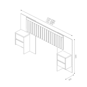 Cabeceira Flórida Flex: Casal / Queen / King, Flex: 1,40/1,60/2,00 m, Painel Ripado em Mdp, c/ Mesa de Cabeceira, Estrutura em Mdf/Mdp. (Colchão, Box e Acessórios, não acompanha o produto).