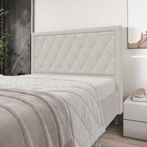 A Cabeceira Centaurus é para você, que procura um visual vintage e elegante. Seu melhor quesito é o design, com seus detalhes em botões e sua moldura, tudo isso com um ótimo custo benefício. O produto possui dois pés de 12 cm e 2 frames para a sustentação do box, não sendo necessário furar a sua cama, apenas encaixa-la nos suportes da cabeceira. Adquira já!