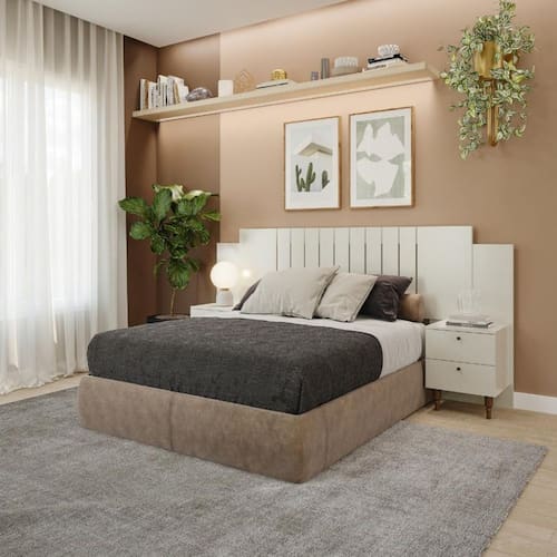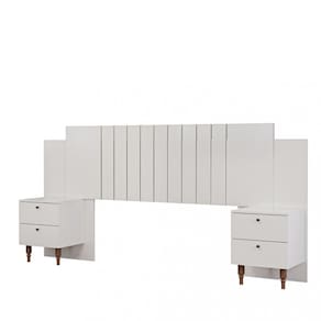A Cabeceira com 2 Mesas Lateral 2 Gavetas 100 MDF Genova Panan é perfeita para quem busca elegância e funcionalidade no quarto. Fabricada em 100 MDF, ela oferece alta durabilidade e um acabamento de qualidade. Suas mesas laterais possuem duas gavetas cada, equipadas com corrediças telescópicas que proporcionam um deslizamento suave e silencioso. Os pés de madeira maciça reforçam a estrutura, trazendo estabilidade e um toque natural ao design. O puxador Self PT complementa o visual moderno e sofisticado, enquanto a cor e o acabamento tornam essa cabeceira uma peça que se adapta facilmente a diferentes estilos de decoração.