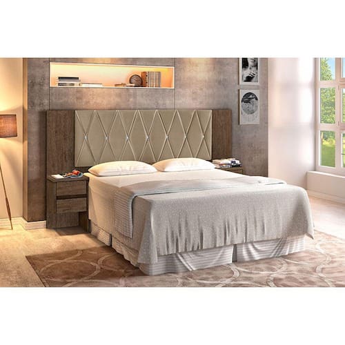 Dimensões do Produto Montado: Altura: 128,5 cm Largura: 279 cm Profundidade: 36,5 cm Observações: - Material Principal: MDF - Acabamento: Pintura UV/Suede Aveludado - Mesas de cabeceira com espessura 25 mm - Painel revestido com tecido trabalhado em junco e botões cristal - 4 Gavetas com corrediças metálicas - Cabeceira expansível nos tamanho: 90cm / 140cm / 160 cm - Largura montada 1,40: 2175 cm - Largura montada 1,60: 238 cm - Largura montada 2,00: 279 cm Informações adicionais: - Verifique o tamanho e os detalhes do produto antes de realizar a compra. - As fotos são meramente ilustrativa. Objetos decorativos que aparecem nas imagens não acompanham o produto. - A transportadora entregará o produto no portão e/ou portaria da residência, ou ainda, somente no andar térreo, em caso de prédios, do endereço de entrega. - Avaliar a mercadoria no ato do recebimento e recusar em caso de divergência ou danos. - Não nos responsabilizamos pela montagem e desmontagem do produto no ato da entrega e devolução, assim como os custos gerados nestas situações. - Sugerimos a contratação de um montador profissional para a montagem do produto. Não nos responsabilizamos por danos causadas no ato da montagem.