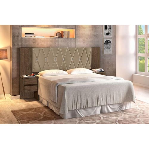 - Painel revestido com tecido trabalhado em junco e botões cristal