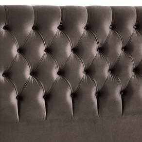 A Cabeceira Cristal e tapecada com espuma de poliuretano e revestimento em tecido suede amassado, botoes revestidos em tecido do mesmo revestimento e ainda possui detalhes com botoes que imitam o strass que deixam o produto mais atrativo e dando um toque de charme.
