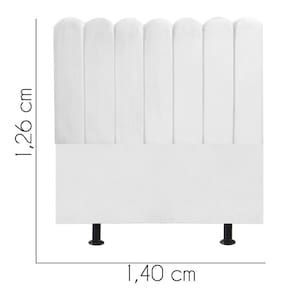 - Largura: 140 cm; - Altura: 126 cm; - Profundidade: 11 cm; - Produto estofado; - Produzido em Madeira de Pinus e Eucalipto; - Pés em pvc.