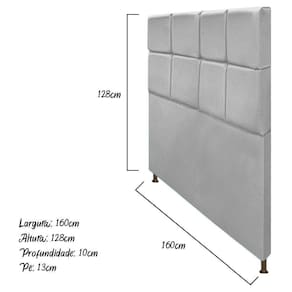 A Cabeceira Damares deixa sua decoração impecável! Além de, agregar cor e luxuosidade ao seu ambiente, ela é produzida com materiais de alta qualidade! Não perca essa oportunidade! Especificações Técnicas da Cabeceira Estofada Damares: - Altura: 128 cm; - Largura: 160 cm; - Profundidade: 10 cm; - Peso: 20 kg. Diferenciais da Cabeceira Estofada Damares: - Material da Estrutura: fabricado com Madeira Pinus e Eucalipto Reflorestada, e alguns detalhes em MDF; - Detalhes do Tecido: possui detalhes em botonê, onde os botões são revestidos no mesmo tecido do produto e finalizados com excelente acabamento; - Detalhes dos Pés: acompanha kit de pés (2 pés) com alta resistência; - Volumes: nessa compra você receberá um único produto. Recomendações de limpeza: -Limpar com flanela limpa e seca. Não molhar o móvel e não expor em lugar úmido ou próximo de fontes de calor. Não usar produtos abrasivos. Observações Importantes: - As imagens ambientadas são meramente ilustrativas e podem apresentar itens que não compõe o produto; - Objetos decorativos que aparecem na foto não acompanham o produto; - As cores do produto podem variar de acordo com o monitor, a iluminação do ambiente, ou sua percepção visual; - A Cabeceira Estofada Damares chegará montada para você, bastando rosquear os pés; - Confira as dimensões antes da compra e certifique-se de que o produto passará por elevadores, portas e corredores, já que nossa entrega não inclui a subida de lances de escada, ou o lançamento de produtos; - Ao receber seus produtos, verifique no ato do recebimento qualquer dano na embalagem. Caso tenha alguma avaria, favor não assinar o comprovante de recebimento (A transportadora tem obrigação de esperar a conferência); - Produto para uso residencial em ambiente interno, não devendo ficar exposto diretamente ao sol, calor e umidades excessivas.