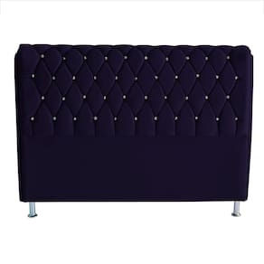 Cabeceira De Cama Londres Casal 140 Cm Suede Botão De Strass Azul Marinho Eli Móveis E Decoração