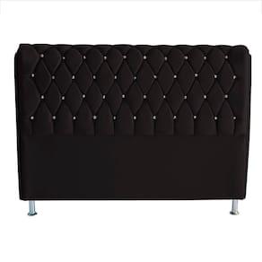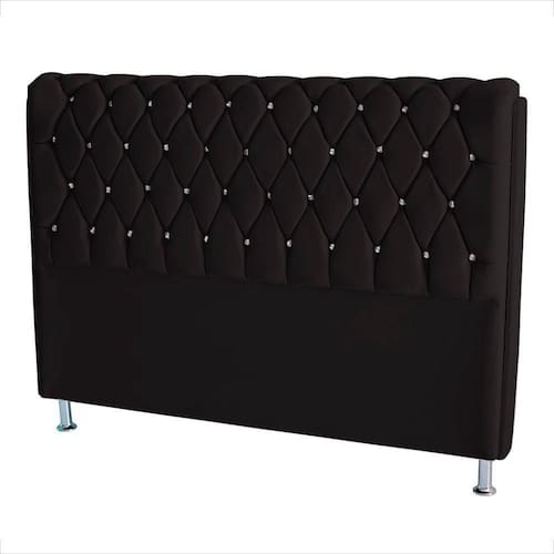 Cabeceira De Cama Londres King 195 Cm Suede Botão De Strass Preto Eli Móveis E Decoração