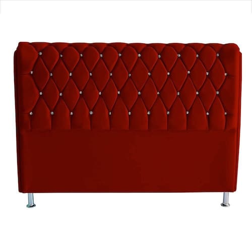Cabeceira De Cama Londres Casal 140 Cm Suede Botão De Strass Vermelho Do Lar Móveis E Decoração