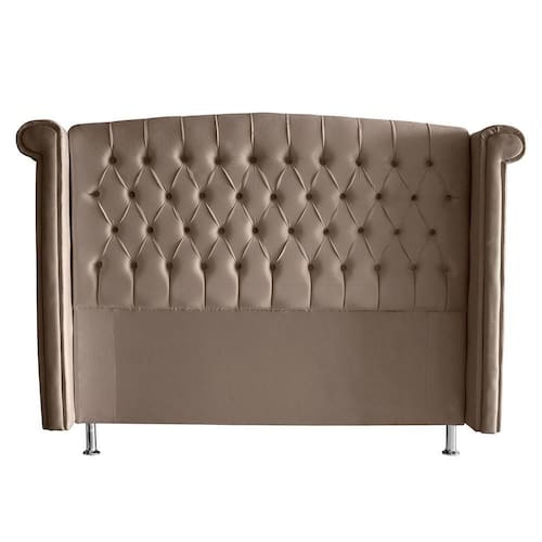 Essa cabeceira casal estofada é um Luxo só, isso porque o seu design curvo somado aos botões revestidos cria um ambiente clássico e charmoso.