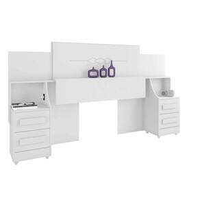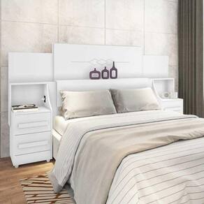 A Cabeceira de Casal Síria - RV Móveis é o produto mais indicado para quem deseja beleza e conforto enquanto aproveita seu momento de descanso. Possui dois criados com gavetas com corrediças telescópicas e puxadores em MDF, além de tomadas embutidas. Conta também com design moderno, sem deixar de lado requinte e sofisticação.