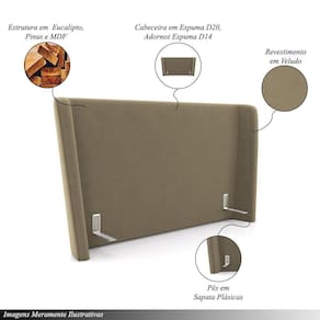 Cabeceira Design Para Cama Casal Torres Pés Em Madeira Veludo Castor G91 - Gran Belo