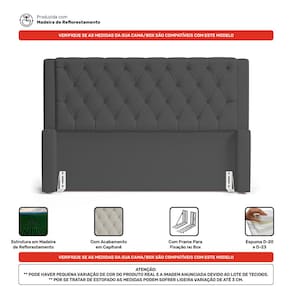 Cabeceira e Calçadeira Báu King Size Atena 195cm Capitonê Suede Cinza - Abmaza