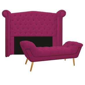 Cabeceira E Calçadeira Veneza 140 Cm Casal Suede Pink