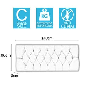 Feita com madeira reforçada 100% de reflorestamento, acabamento em tecido Suede, tratamento antialérgico e antiácaro, suporte para fixação, super fácil de instalar. Não nos responsabilizamos pela montagem. Já acompanha suporte e parafusos de fixação.
