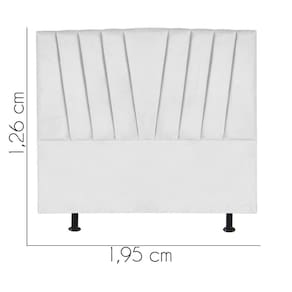 - Largura: 195 cm; - Altura: 126 cm; - Profundidade: 11 cm; - Produto estofado; - Produzido em Madeira de Pinus e Eucalipto; - Pés em pvc;