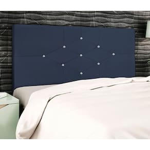 Cabeceira Estofada Box Casal Queen Size Encosto Para Cama Camboriu 164x126 CM Azul Marinho