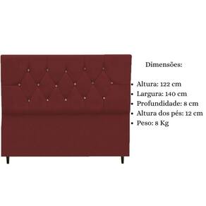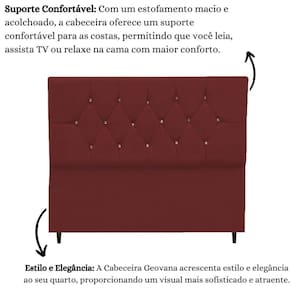 Cabeceira Estofada Cama Box Casal 140 Cm Geovana Suede Bordô