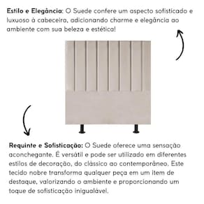 Fabricada com materiais de alta qualidade, como madeira eucalipto e revestimento em suede, esta cabeceira é durável e resistente, garantindo não apenas estilo, mas também funcionalidade para o seu ambiente.