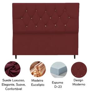 Fabricada com materiais de alta qualidade, como madeira eucalipto e revestimento em suede, esta cabeceira é durável e resistente, além disso os detalhes de costura com strass conferem um toque de sofisticação e elegância ao seu espaço.