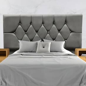 Fabricada com materiais de alta qualidade, como madeira eucalipto e revestimento em suede, esta cabeceira é durável e resistente, além disso os detalhes de costura com strass conferem um toque de sofisticação e elegância ao seu espaço.