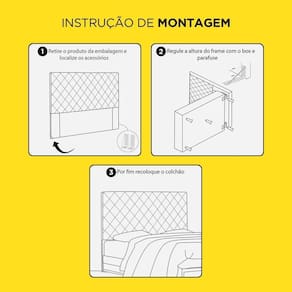 - Produto enviado montado. Sendo necessário apenas parafusar os frames na cabeceira.