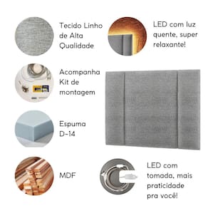 Cabeceira Casal Estofada com Iluminação LED – Ideal para quem busca conforto e modernidade! Nossa Cabeceira de Cama Box com LED é o complemento perfeito para quem busca estilo e funcionalidade. Fabricada com materiais de alta qualidade, essa peça oferece: Design Moderno: Com um design contemporâneo e minimalista, esta Cabeceira de Cama Casal se destaca pelo seu acabamento impecável. Iluminação LED Integrada: A cabeceira vem equipada com uma mangueira de LED quente (amarelo) BIVOLT já com tomada, com uma luz suave e aconchegante, ideal para criar um ambiente relaxante ou para leitura noturna. Medidas Perfeitas: Adequada para cama box casal, a cabeceira possui 140 cm de largura, 60 cm de altura e 5 cm de profundidade. Instalação Simples: Acompanha manual detalhado e todos os acessórios necessários para uma montagem rápida e prática. Material Resistente: Confeccionada com MDF de alta qualidade, garantindo robustez e durabilidade. O revestimento é feito com espuma D-14, proporcionando mais conforto para apoiar as costas. A superfície é revestida em Linho, Veludo ou Bouclé premium. Adquira já e torne seu espaço mais acolhedor e estiloso com nossa Cabeceira de Casal LED. Dimensões Altura: 60 cm Largura: 140 cmProfundidade: 5 cmPeso: 6 Kg Versatilidade e Estilo: Seu design versátil permite que ela se adapte facilmente a diferentes estilos de decoração, desde o moderno até o clássico, trazendo um toque de sofisticação a qualquer quarto. Qualidade e Durabilidade: A escolha de materiais de alta qualidade, como o MDF de 6mm e a espuma de altíssima qualidade, garante que esta cabeceira ofereça não apenas um visual elegante, mas também durabilidade e conforto ao longo do tempo. A iluminação LED de baixo consumo energético adiciona um benefício prático e ecológico, prolongando a vida útil da peça. Observações importantes: - As imagens são ilustrativas, não acompanham objetos de decoração e eletrônicos. - Pode haver alguma diferença de tonalidade entre a imagem e o produto real, por conta do tratamento de imagens e a calibração de cores do seu monitor. cabeceira com led cabeceira de cama casal cabeceira queen cabeceira king cabeceira infantil cabeceira modulada cabeceira modular cabeceira móvel Cabeceira capitonê Cabeceira madeira Cabeceira acolchoada Cabeceira moderna Cabeceira alta Cabeceira rústica Cabeceira sob medida Cabeceira simples Cabeceira estilosa Cabeceira elegante Cabeceira vintage Cabeceira design Design de interiores ripado Marca: Tatite Decor