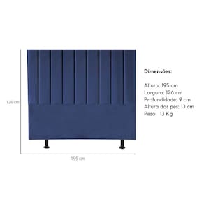 Altura: 126 cm Largura: 195 cm Profundidade: 10 cm Altura dos pés: 13 cm Peso: 13 Kg