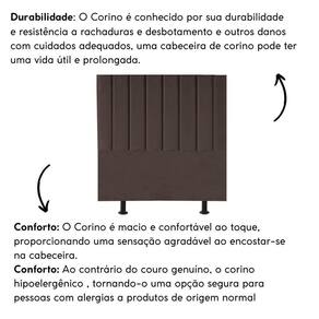 Fabricada com materiais de alta qualidade, como madeira eucalipto e revestimento em Corino, esta cabeceira é durável e resistente, garantindo não apenas estilo, mas também funcionalidade para o seu ambiente.