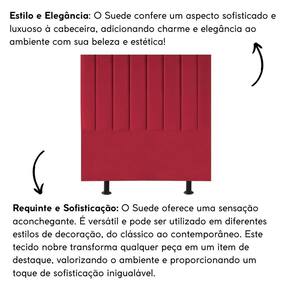 Fabricada com materiais de alta qualidade, como madeira eucalipto e revestimento em suede, esta cabeceira é durável e resistente, garantindo não apenas estilo, mas também funcionalidade para o seu ambiente.