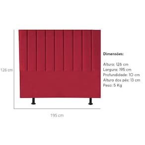 Cabeceira Estofada Cama Box King 195 Cm Taís Suede vermelho - Blush