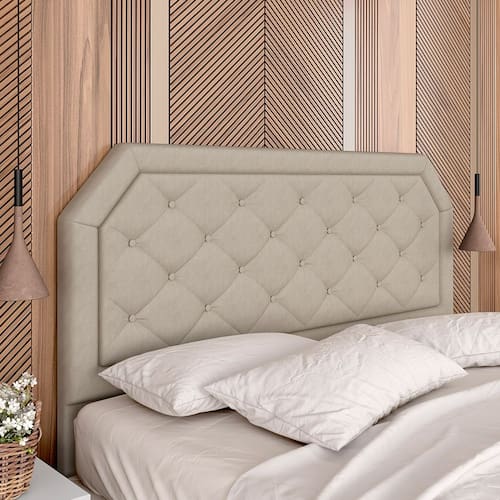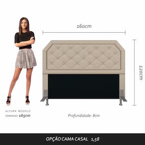 A Cabeceira Estofada Queen Florença com botonê, design único e exclusivo vem para modernizar e deixar seu ambiente mais aconchegante para sua noite de sono.Detalhes TécnicosMedidas da Cabeceira Montada: A:120cm | L:160cm | P:8cmMateriais de Fabricação- Estrutura: Madeira Eucalipto- Tonalidade: Suede Bege- Pés de 13cm em Polietileno- Medida para Cama: 1,58 cm- Acompanha kit frame- Estruturado com material de altíssima qualidade, evitando fungos e mofo.Conteúdo da Embalagem- 01 Cabeceira- Manual de Montagem- Acessórios para MontagemObservações Importantes- As imagens ambientadas são meramente ilustrativas e podem apresentar itens que não incorporam o produto;- Todos os nossos produtos são novos, acompanham documento fiscal e possuem garantia de 3 meses, essa garantia cobre somente defeitos de fabricação;- A entrega só será efetuada no endereço do CEP, caso o endereço seja diferente do CEP informado no pedido, a entrega terá cobrança adicional e o comprador arcará com as despesas;- Não realizamos entregas para zonas rurais, via caminhos fluviais e distritos, por isso não aceitamos CEP GERAL da região;- Não é possível realizar o agendamento de entrega do produto, é necessário que acompanhe o rastreio de seu pedido para saber a previsão de entrega;- As entregas somente serão realizadas para um responsável maior de idade (+18);- Enviamos para diversos estados, sendo assim nossas entregas são realizadas por transportadoras parceiras de nossa empresa. Confira as dimensões antes da compra e certifique-se de que o produto passará por elevadores, portas e corredores já que nossa entrega não inclui a subida de lances de escada, transporte por elevador e o lançamento de produtos, em caso de condomínios residenciais a entrega é feita somente até a portaria. Todas as entregas são realizadas em dias e horários comerciais;- Ao receber os seus produtos observe se a embalagem se encontra em perfeitas condições. Se você adquiriu algum móvel, confira atentamente a quantidade de volumes e o aspecto físico das embalagens. Confira também se a cor do móvel está de acordo com o seu pedido;- O prazo de cancelamento por arrependimento é de até 7 dias corridos a contar da data de recebimento;- Os produtos e assistências são enviados DESMONTADOS, MONTAGENS E DESMONTAGENS recomendamos sempre a contratação de um montador profissional e é válido lembrar que o custo desses serviços é por conta do comprador;- Objetos decorativos que aparecem na foto não acompanham o produto;- Evitar a exposição direta à luz solar e à umidade;- Para limpeza, limpar com pano macio e seco, não utilizar qualquer outro tipo de produtos químicos;- As cores do produto podem variar de acordo com o monitor, a iluminação do ambiente ou sua percepção visual.
