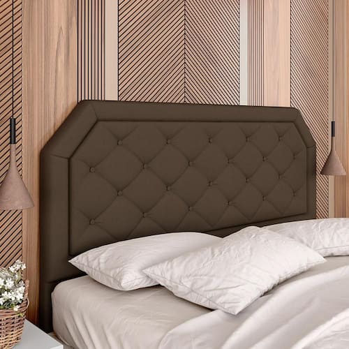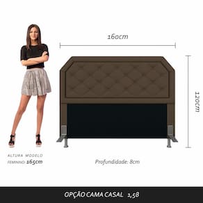 A Cabeceira Estofada Queen Florença com botonê, design único e exclusivo vem para modernizar e deixar seu ambiente mais aconchegante para sua noite de sono.Detalhes TécnicosMedidas da Cabeceira Montada: A:120cm | L:160cm | P:8cmMateriais de Fabricação- Estrutura: Madeira Eucalipto- Tonalidade: Suede Marrom- Pés de 13cm em Polietileno- Medida para Cama: 1,58 cm- Acompanha kit frame- Estruturado com material de altíssima qualidade, evitando fungos e mofo.Conteúdo da Embalagem- 01 Cabeceira- Manual de Montagem- Acessórios para MontagemObservações Importantes- As imagens ambientadas são meramente ilustrativas e podem apresentar itens que não incorporam o produto;- Todos os nossos produtos são novos, acompanham documento fiscal e possuem garantia de 3 meses, essa garantia cobre somente defeitos de fabricação;- A entrega só será efetuada no endereço do CEP, caso o endereço seja diferente do CEP informado no pedido, a entrega terá cobrança adicional e o comprador arcará com as despesas;- Não realizamos entregas para zonas rurais, via caminhos fluviais e distritos, por isso não aceitamos CEP GERAL da região;- Não é possível realizar o agendamento de entrega do produto, é necessário que acompanhe o rastreio de seu pedido para saber a previsão de entrega;- As entregas somente serão realizadas para um responsável maior de idade (+18);- Enviamos para diversos estados, sendo assim nossas entregas são realizadas por transportadoras parceiras de nossa empresa. Confira as dimensões antes da compra e certifique-se de que o produto passará por elevadores, portas e corredores já que nossa entrega não inclui a subida de lances de escada, transporte por elevador e o lançamento de produtos, em caso de condomínios residenciais a entrega é feita somente até a portaria. Todas as entregas são realizadas em dias e horários comerciais;- Ao receber os seus produtos observe se a embalagem se encontra em perfeitas condições. Se você adquiriu algum móvel, confira atentamente a quantidade de volumes e o aspecto físico das embalagens. Confira também se a cor do móvel está de acordo com o seu pedido;- O prazo de cancelamento por arrependimento é de até 7 dias corridos a contar da data de recebimento;- Os produtos e assistências são enviados DESMONTADOS, MONTAGENS E DESMONTAGENS recomendamos sempre a contratação de um montador profissional e é válido lembrar que o custo desses serviços é por conta do comprador;- Objetos decorativos que aparecem na foto não acompanham o produto;- Evitar a exposição direta à luz solar e à umidade;- Para limpeza, limpar com pano macio e seco, não utilizar qualquer outro tipo de produtos químicos;- As cores do produto podem variar de acordo com o monitor, a iluminação do ambiente ou sua percepção visual.