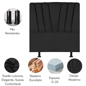 Cabeceira Estofada Cama Box Solteiro 100 Cm Louise Suede Preto