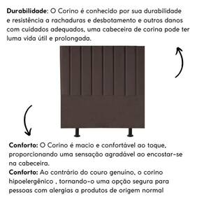 Fabricada com materiais de alta qualidade, como madeira eucalipto e revestimento em corino, esta cabeceira é durável e resistente, garantindo não apenas estilo, mas também funcionalidade para o seu ambiente.