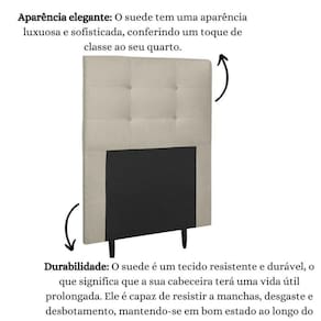 Fabricada com materiais de alta qualidade, como madeira eucalipto e revestimento em suede, esta cabeceira é durável e resistente, garantindo não apenas estilo, mas também funcionalidade para o seu ambiente.