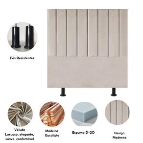 Fabricada com materiais de alta qualidade, como madeira eucalipto e revestimento em Veludo, esta cabeceira é durável e resistente, garantindo não apenas estilo, mas também funcionalidade para o seu ambiente.