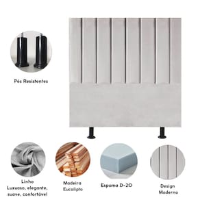 Cabeceira Estofada Cama Box Solteiro 90 cm Luísa Linho E Frame - Cinza Claro