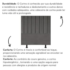 Fabricada com materiais de alta qualidade, como madeira eucalipto e revestimento em corino, esta cabeceira é durável e resistente, garantindo não apenas estilo, mas também funcionalidade para o seu ambiente.