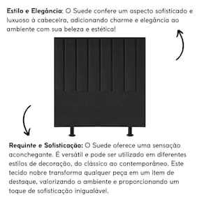 Fabricada com materiais de alta qualidade, como madeira eucalipto e revestimento em suede, esta cabeceira é durável e resistente, garantindo não apenas estilo, mas também funcionalidade para o seu ambiente.