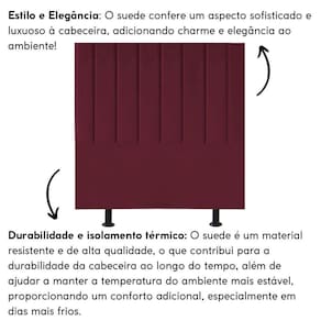 Fabricada com materiais de alta qualidade, como madeira eucalipto e revestimento em suede, esta cabeceira é durável e resistente, garantindo não apenas estilo, mas também funcionalidade para o seu ambiente.