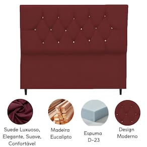Cabeceira Estofada Cama Box Solteiro 90 Cm Suede Ayla Bordô