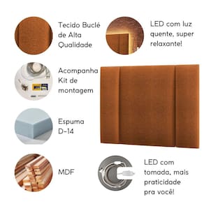 Cabeceira Solteiro Estofada com Iluminação LED – Ideal para quem busca conforto e modernidade! Nossa Cabeceira Painel Solteiro com LED é o complemento perfeito para quem busca estilo e funcionalidade. Fabricada com materiais de alta qualidade, essa peça oferece: Design Moderno: Com um design contemporâneo e minimalista, esta cabeceira de cama solteiro se destaca pelo seu acabamento impecável. Iluminação LED Integrada: A cabeceira vem equipada com uma mangueira de LED quente (amarelo) BIVOLT já com tomada, com uma luz suave e aconchegante, ideal para criar um ambiente relaxante ou para leitura noturna. Medidas Perfeitas: Adequada para cama box solteiro, a cabeceira possui 90 cm de largura, 60 cm de altura e 5 cm de profundidade. Instalação Simples: Acompanha manual detalhado e todos os acessórios necessários para uma montagem rápida e prática. Material Resistente: Confeccionada com MDF de alta qualidade, garantindo robustez e durabilidade. O revestimento é feito com espuma D-14, proporcionando mais conforto para apoiar as costas. A superfície é revestida em linho, veludo ou bouclé premium. Adquira já e torne seu espaço mais acolhedor e estiloso com nossa Cabeceira de Solteiro LED. Dimensões Altura: 60 cm Largura: 90 cmProfundidade: 5 cmPeso: 5 Kg Versatilidade e Estilo: Seu design versátil permite que ela se adapte facilmente a diferentes estilos de decoração, desde o moderno até o clássico, trazendo um toque de sofisticação a qualquer quarto. Qualidade e Durabilidade: A escolha de materiais de alta qualidade, como o MDF de 6mm e a espuma de altíssima qualidade, garante que esta cabeceira ofereça não apenas um visual elegante, mas também durabilidade e conforto ao longo do tempo. A iluminação LED de baixo consumo energético adiciona um benefício prático e ecológico, prolongando a vida útil da peça. Observações importantes: - As imagens são ilustrativas, não acompanham objetos de decoração e eletrônicos. - Pode haver alguma diferença de tonalidade entre a imagem e o produto real, por conta do tratamento de imagens e a calibração de cores do seu monitor. cabeceira com led cabeceira de cama casal cabeceira queen cabeceira king cabeceira infantil cabeceira modulada cabeceira modular cabeceira móvel Cabeceira capitonê Cabeceira madeira Cabeceira acolchoada Cabeceira moderna Cabeceira alta Cabeceira rústica Cabeceira sob medida Cabeceira simples Cabeceira estilosa Cabeceira elegante Cabeceira vintage Cabeceira design Design de interiores Marca: Tatite Decor