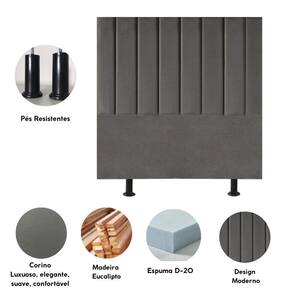 Cabeceira Estofada Cama Casal 140 Cm Luna Corino E Frame Cinza