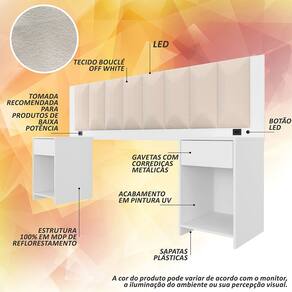 A Cabeceira Deinze, traz diferencial com seu sistema de iluminação LED embutido, que oferece uma iluminação suave e indireta, criando uma atmosfera acolhedora e relaxante