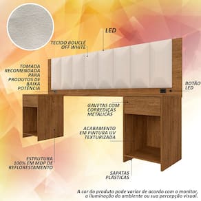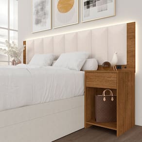 A Cabeceira Deinze, traz diferencial com seu sistema de iluminação LED embutido, que oferece uma iluminação suave e indireta, criando uma atmosfera acolhedora e relaxante