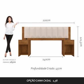 Medidas da Cabeceira montada: A: 121,5cm | L: 220cm | P: 45cm