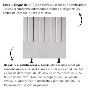 Fabricada com materiais de alta qualidade, como madeira eucalipto e revestimento em suede, esta cabeceira é durável e resistente, garantindo não apenas estilo, mas também funcionalidade para o seu ambiente.