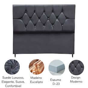Fabricada com materiais de alta qualidade, como madeira eucalipto e revestimento em Suede, esta cabeceira é durável e resistente, garantindo não apenas estilo, mas também funcionalidade para o seu ambiente.